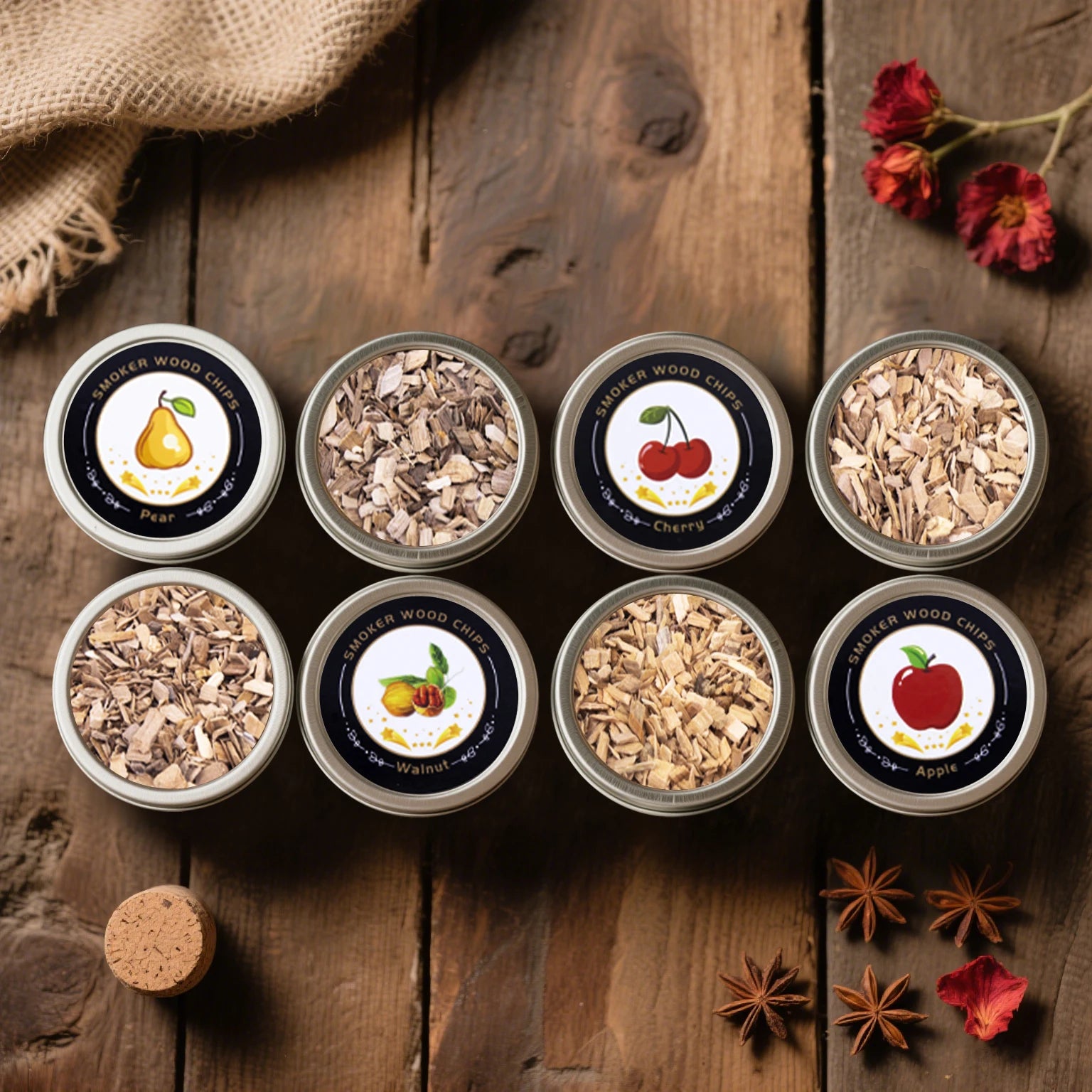 Inside, you’ll find four carefully selected smoker wood chip tins—Apple, Cherry, Peach, and Walnut—each chosen to create layers of aroma reminiscent of a Kyoto whiskey bar. The smooth miniature oak barrel rests gracefully on its round base, a nod to traditional kintsugi balance and understated beauty, while the golden stir stick adds a touch of refined luxury.