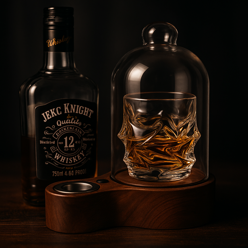 • Zen-Inspired Wooden Base & Glass Dome – Smooth curves and natural grain echo the warmth of Japanese craftsmanship, creating a serene stage for your whiskey.